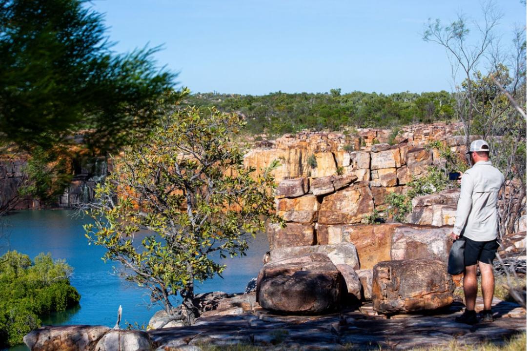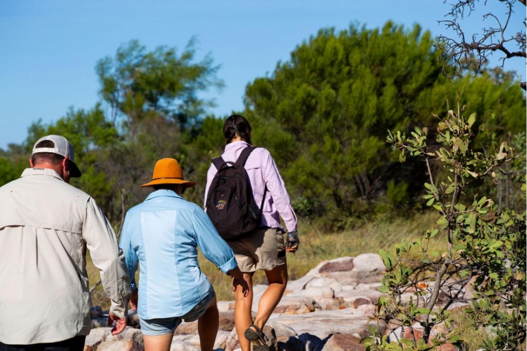 Wandering along tranquil creek beds, through rugged terrain, and marvel at the rich variety of native flora and fauna that call this landscape home. This guided trek offers breathtaking views of ancient Bradshaw rock art, Aboriginal cultural sites, and stunning natural plunge pools and waterfalls (seasonal).